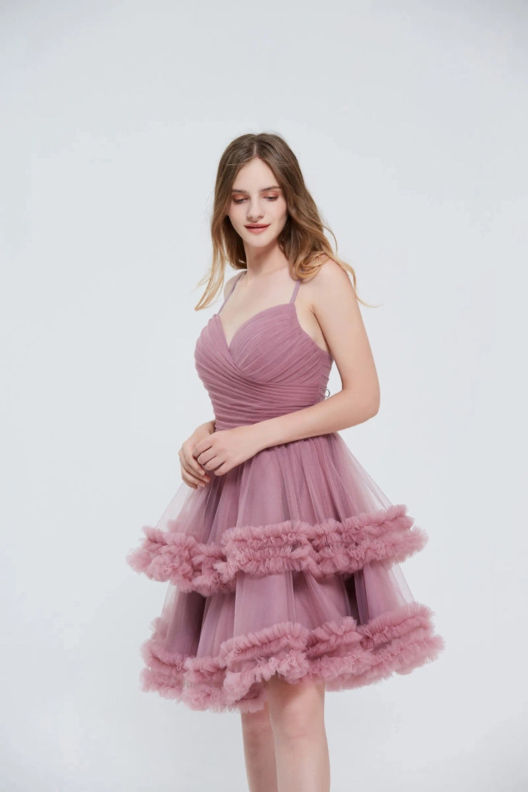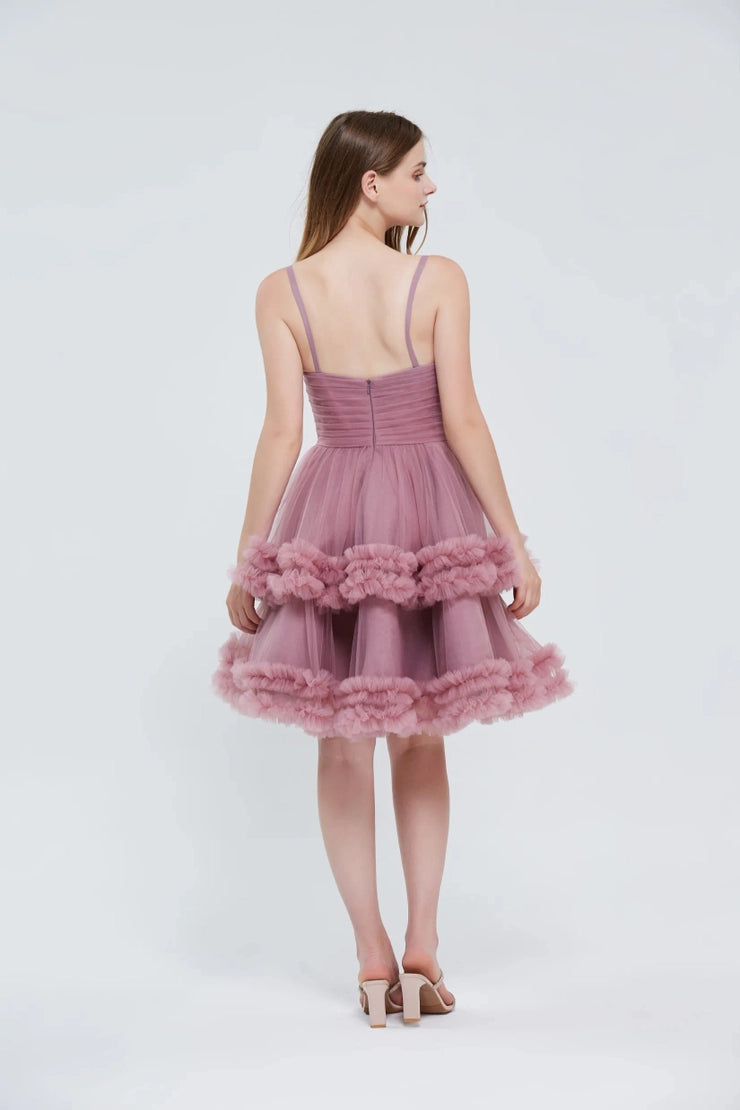 Indulge in sophistication with our J20080 dress. Featuring a delicate V-neck and spaghetti straps, this mauve A-line dress exudes elegance. With a tea length and damas/short design, it is perfect for any occasion. Embrace luxury and grace with our exclusive dress.